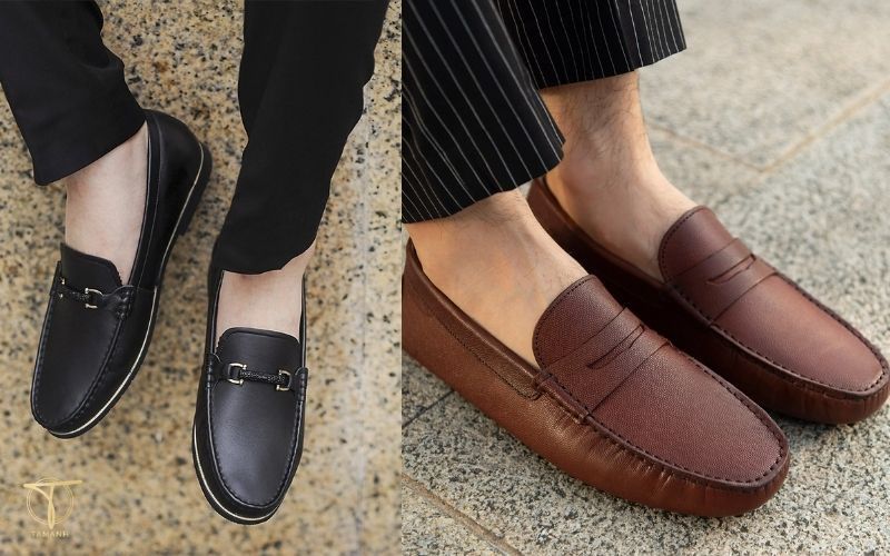 Driving Shoes (giày da đế mềm, đinh cao su) có ưu điểm nhẹ, êm và linh hoạt, phù hợp cho các chuyến đi dài hoặc hoạt động ngoài trời. Chúng dễ phối cùng quần short, áo polo, mang đến vẻ năng động, phóng khoáng nhưng không kém phần tinh tế.