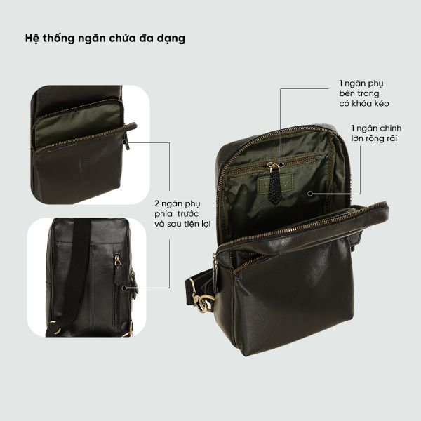 - Ngăn phụ phía trước: Thiết kế khóa kéo dễ dàng, lý tưởng để đựng các vật dụng cần lấy nhanh như vé xe hay chìa khóa.