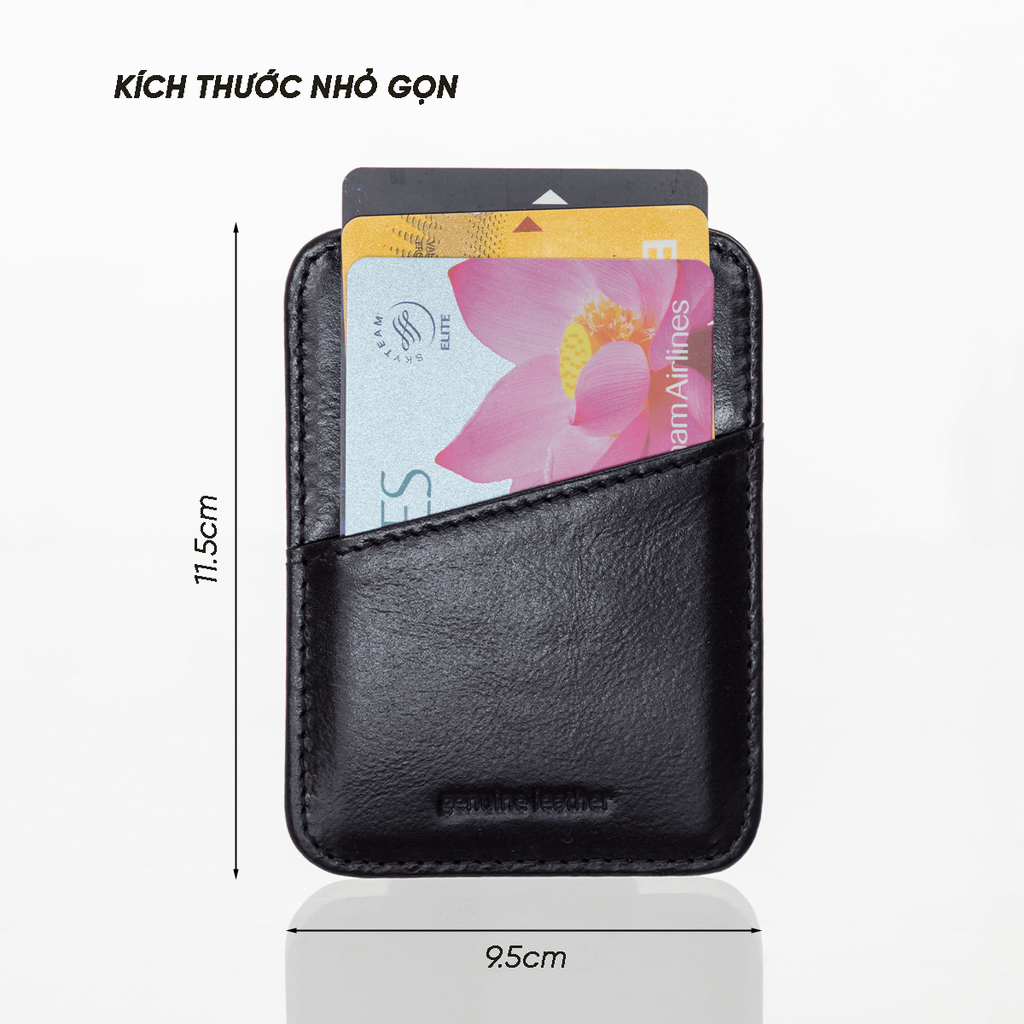 Thiết kế với kích thước 9.5 x 11.5 cm giúp ví nằm gọn trong túi quần hoặc túi áo vest mà không gây cộm. Form dáng cân đối, tiện lợi mang theo khi đi làm, gặp gỡ đối tác hay sử dụng thường ngày.