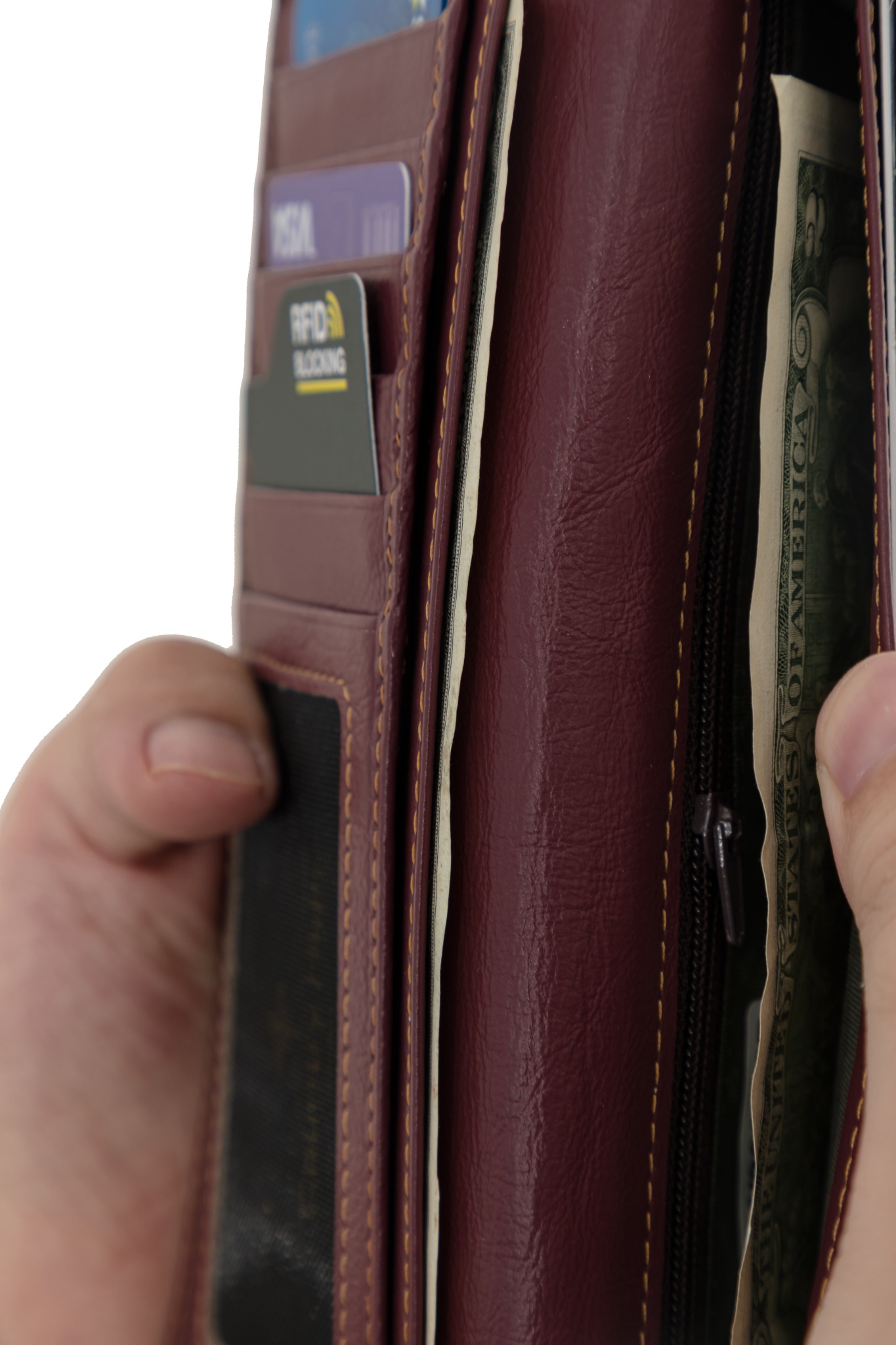 - Lớp lót tích hợp công nghệ RFID đặc biệt để giúp bảo vệ các thẻ chip (thẻ tín dụng, thẻ ATM, v.v.v) khỏi bị quét trái phép