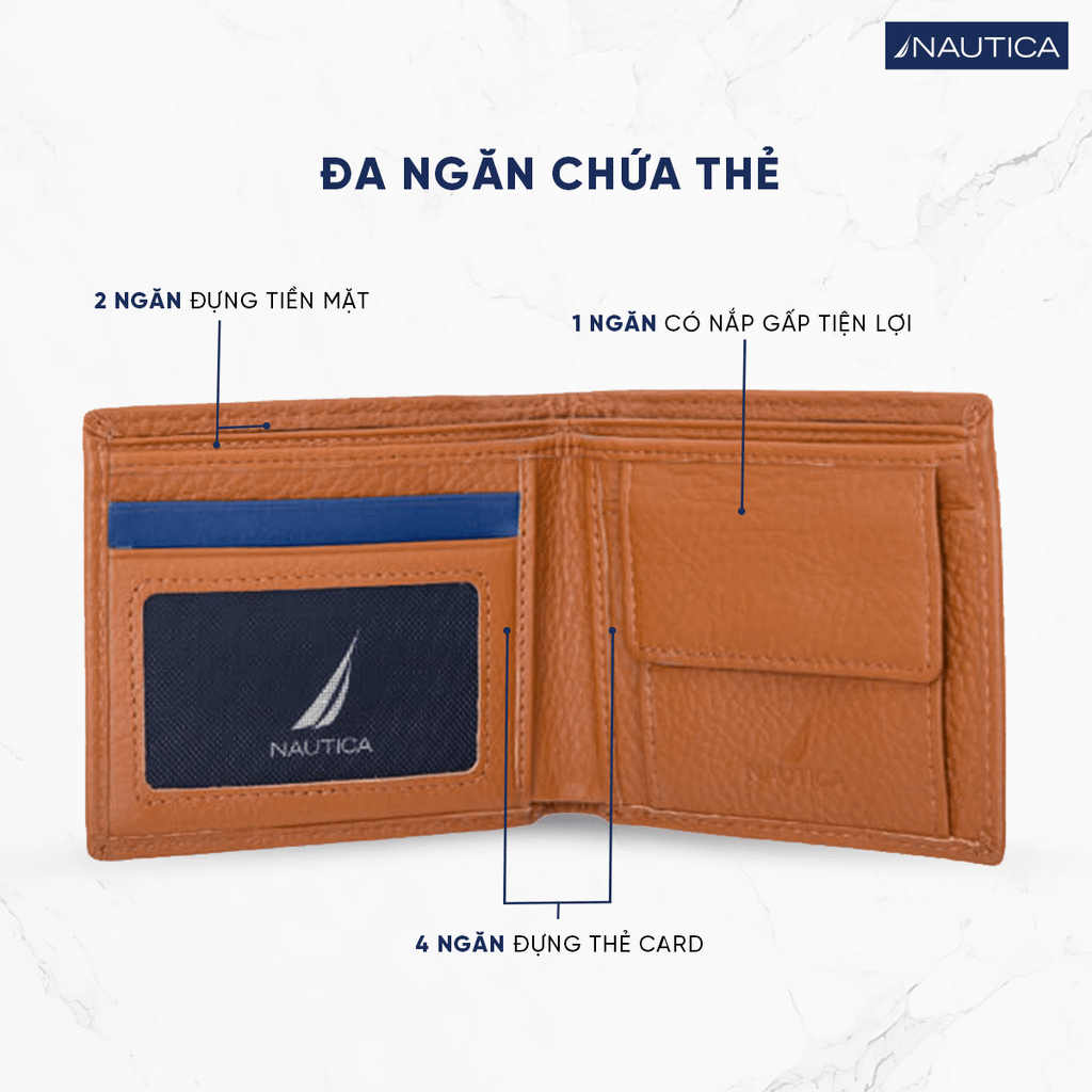 Ví Da Nautica NT90019 được chế tác từ da Nappa với bề mặt mềm mịn, độ bền cao và khả năng giữ form tốt. Chất da mang lại cảm giác êm tay khi sử dụng, đồng thời giữ được vẻ đẹp sang trọng lâu dài.