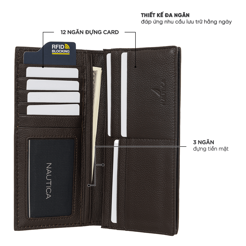 Với kích thước 18.5 x 9 cm, Ví Dài Nautica NT90210 dễ dàng đặt gọn trong túi xách hoặc cặp công việc, đồng hành cùng bạn trong mọi hoạt động hằng ngày.