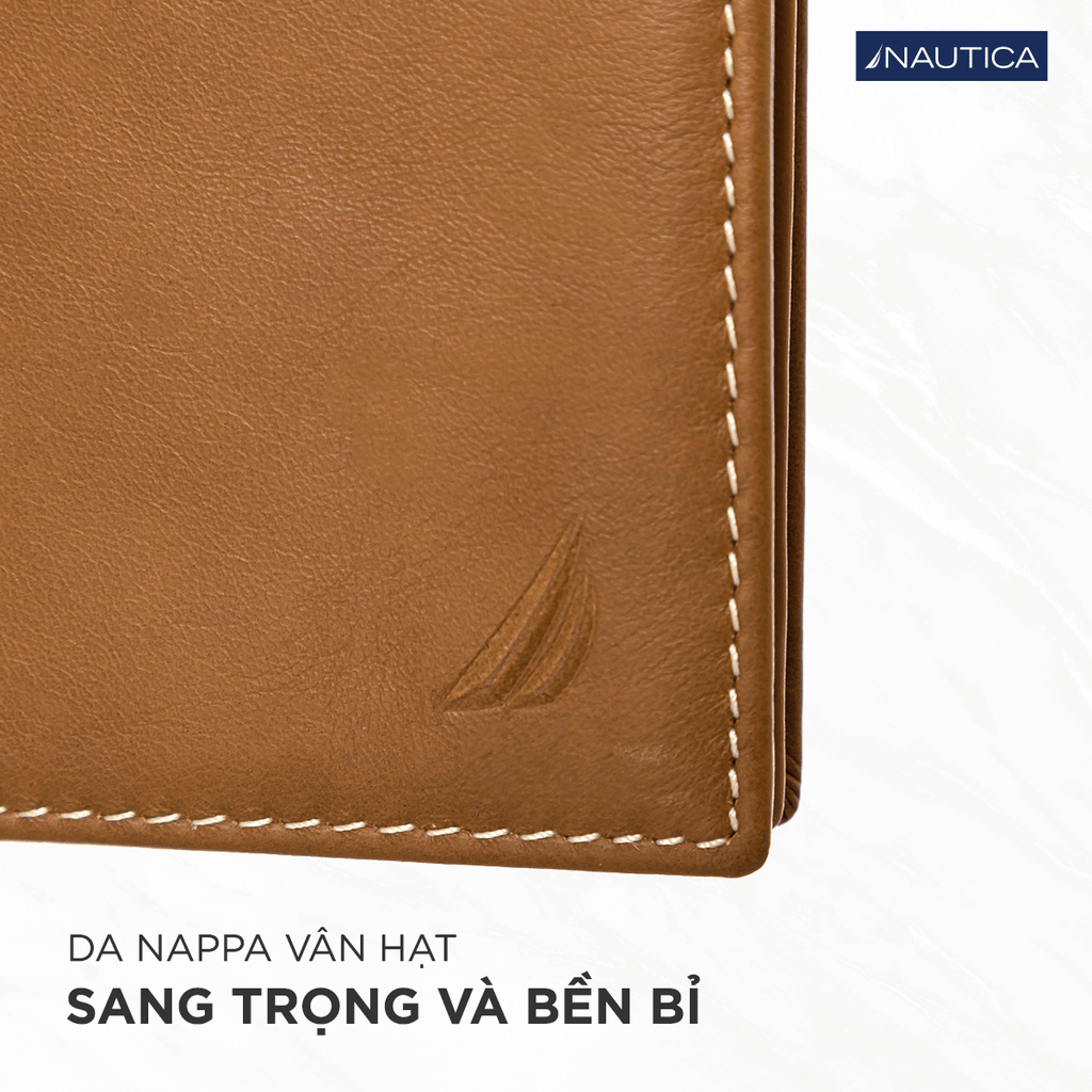 Chiếc ví được chế tác từ da Nappa vân hạt, nổi tiếng với độ bền, độ mềm mịn và khả năng giữ form vượt trội. Chất da cao cấp kết hợp cùng đường may sắc sảo không chỉ tạo vẻ ngoài sang trọng mà còn giúp sản phẩm duy trì sự mới mẻ trong quá trình sử dụng. Đây là minh chứng rõ ràng cho chất lượng gia công của Nautica.